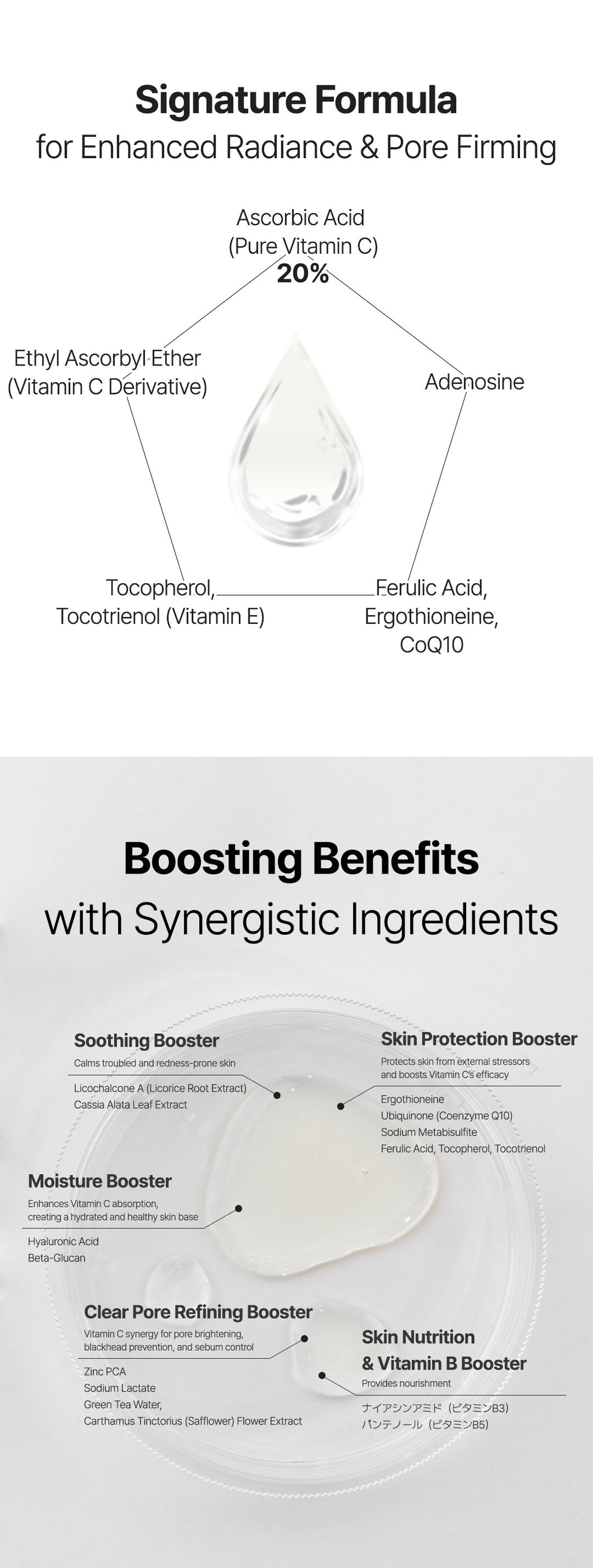 Water, Ascorbic Acid, Alcohol, Sodium Lactate, Ethyl Ascorbyl Ether, 1,2-Hexanediol, Butylene Glycol, Sodium Hyaluronate, Diethoxyethyl Succinate, Caprylyl Glycol, Camellia Sinensis Leaf Water, Carthamus Tinctorius (Safflower) Flower Extract, Xanthan Gum, Glycerin, Glucose, Citrus Aurantium Dulcis (Orange) Peel Oil, Adenosine, Caprylhydroxamic Acid, Sodium Metabisulfite, Zinc PCA, Panthenol, Niacinamide, Bis-PEG-18 Methyl Ether Dimethyl Silane, Ammonium Acryloyldimethyltaurate/VP Copolymer, Rosa Davurica Bud Extract, Ethyl Hexanediol, Beta-Glucan, t-Butyl Alcohol, Ubiquinone, PEG-60 Hydrogenated Castor Oil, Phenoxyethanol, Limonene
